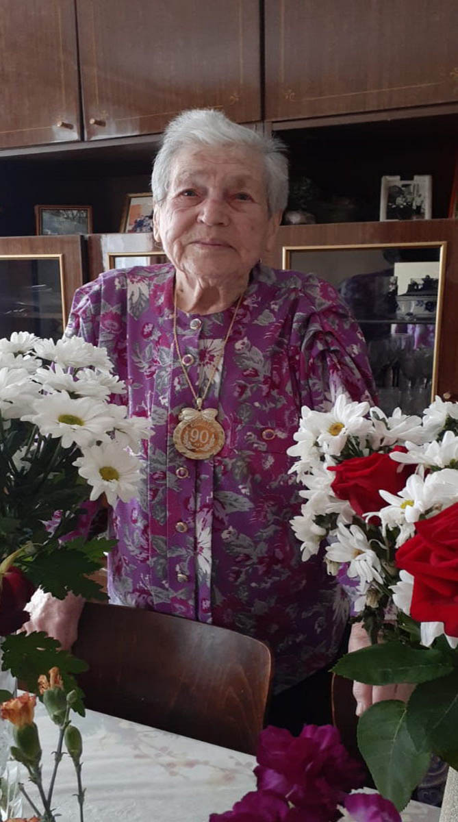 На фото: получательница социальных услуг Центра Павлова Раиса Дмитриевна принимает букет и поздравления от своего социального работника Бабакиной Ольги Владимировны.