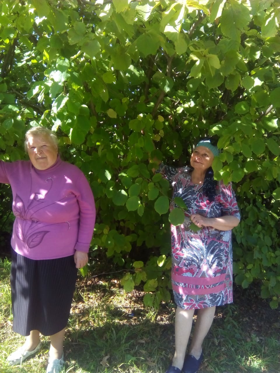 Получательнице социальных услуг Управления «Егорьевск» Яксон Наталии Владимировне, чтобы набрать орехов, ходить далеко не нужно. Прямо на ее приусадебном участке растет большое ореховое дерево. Летом, в жаркие дни, ее подруги Ануфриева Ольга Михайловна и Смирнова Маргарита Сергеевна укрываются от палящего солнца в тени орешника, стоящего во дворе, а в конце лета с удовольствием лакомятся вкусными орехами и отмечают праздник всем двором. С орехами, выращенными на своем участке, наша подопечная печет вкусный и ароматный пирог по фирменному рецепту, которым угощает своих родных и друзей.