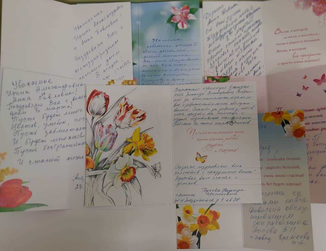 Большое количество поздравлений получили и сотрудники Центра от своих подопечных. Наши получатели социальных услуг звонили, писали, присылали открытки. Социальные работники получили огромное количество благодарностей за внимательное, терпеливое и доброжелательное обслуживание, за доброту и готовность прийти на помощь, за умение создать позитивное настроение. Милые дамы, которым предоставляет социальные услуги социальный работник Светлана Вассерман, придумали поздравление в виде фотоколлажа. А получатель социальных услуг Александр Рогачев посвятил своему социальному работнику Ольге Самсоновой прекрасное стихотворение: