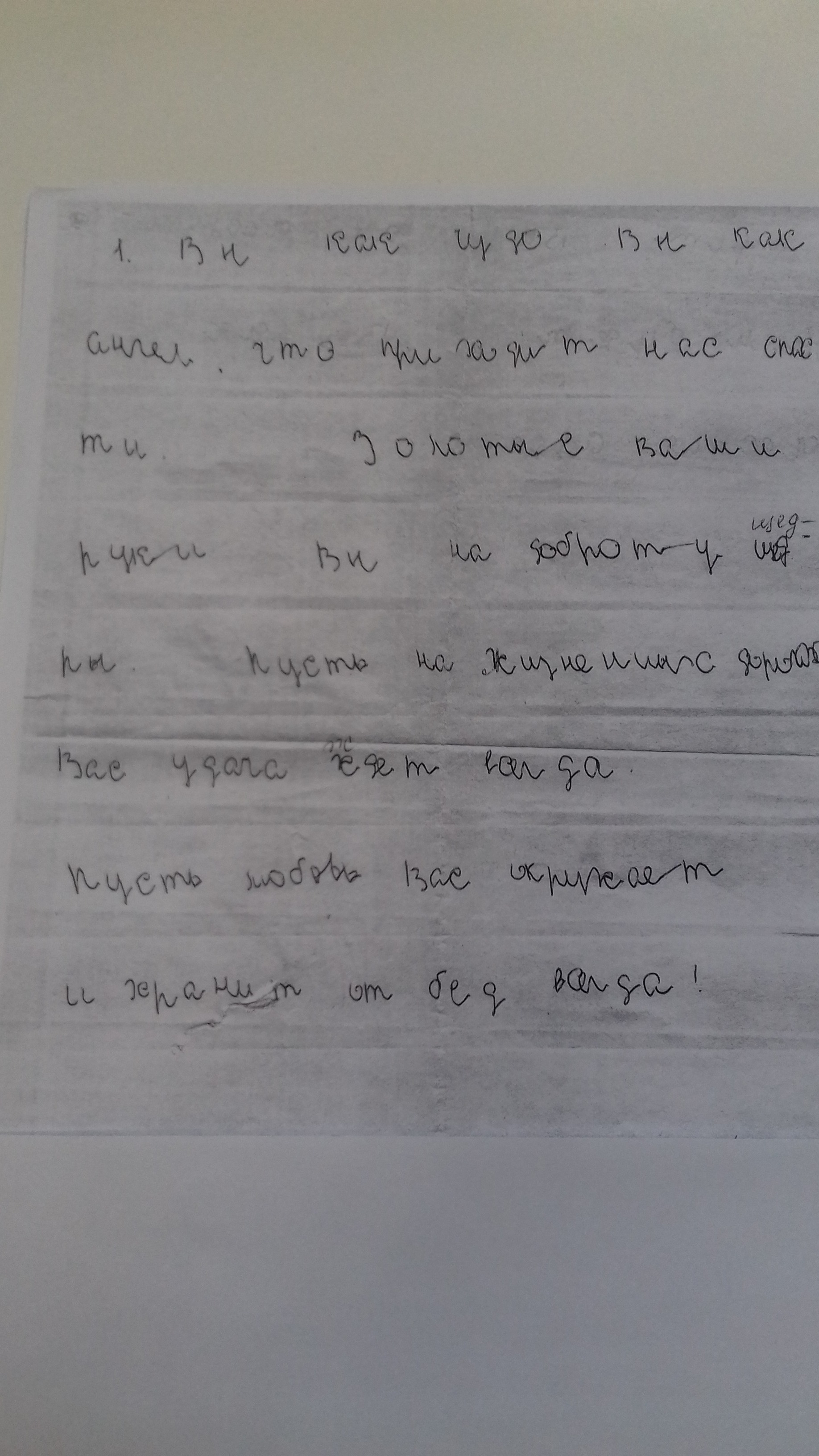 Галина Михайловна всю жизнь преподавала и учила, но несмотря на то, что уже давно из-за болезни не работает, ее бывшие ученики не забывают о ней, помогают, опекают. Вокруг Галины Михайловны всегда много друзей, потому что она светлый человек и для каждого у нее находится доброе слово. Часто эти слова становятся стихами, которые наша подопечная посвящает любимым людям. Добрые и доверительные отношения сложились у Галины Михайловны с её помощницей, и, в качестве поздравления с профессиональным праздником, она написала стихи, в которых благодарит своего социального работника.